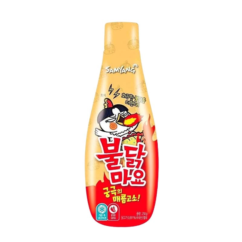 Den godaste och mest smakrika stark sås nu som majonnäs. Buldak Hot Sauce är en underbart het hot sauce som är baserad på den sås som smaksätter de populära Samyang Buldaknudlarna. Den bjuder på en djup smak av kyckling och en eldig hetta som är lika stark som beroendeframkallande. Buldak Mayo bjuder på en krämig och het majonnäs med buldaksmaken intakt. Lite mindre hetta än de andra såserna, men lika god och mångsidig. Fungerar på i princip allt, vare sig du vill göra en het pokebowl eller bara göra korven lite mer speciell! 250g.