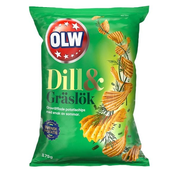 Svensk sommar i form av ett chips: OLWs dill och gräslök är den perfekta kombinationen av smaker. Krispiga och med en tydlig dill och lökig smakprofil gör dessa till en svensk klassiker. 175g.