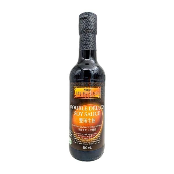 Här är Lee Kum Kees mest lyxiga och smakrika sojasås: Double Deluxe Soy! Ja, man hör ju bara på namnet att det här kommer att bli en grym sojasås. Double deluxe syftar till att denna sojasås blivit dubbelfermenterad, och bjuder därmed på en otroligt djup och komplex umamismak. Används när du verkligen vill att den karaktäristiska sojasmaken ska skina som starkast. Använd som bas i marinad eller sås, samt som dippsås till de allra finaste sushibitarna. 500ml.