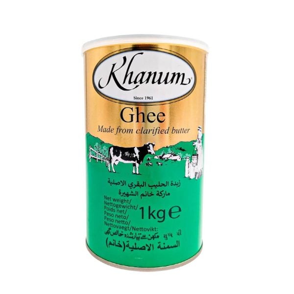 Ett måste när du lagar autentisk indisk mat! Ghee är rent smörfett (skirat smör) med ett bra bäst före datum och kan förvaras i rumstemperatur tills förpackningen är öppnad. Har en högre rykpunkt än vanligt smör, samt en smak som är lite rikare och nästan nötigare. Skirat smör får man om man smälter smöret och tar bort det lilla “vita på ytan” som blir kvar. Det innehåller därmed inget vatten eller mjölksolider. Observera att Ghee har en lukt som kan upplevas lite obehaglig av vissa, men så fort det smälter på pannan kommer den underbara nötiga doften! Använd i matlagning i stället för matolja eller smör att steka med. 1kg.