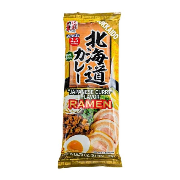 Ramen möter japansk curry, två av Japans mest ikoniska rätter i en fantastisk blandning. Här har du ramen färdig på några minuter! Dessa snabbramen från Hokkaido kombinerar klassisk japansk ramen med den rika och kryddiga smaken av japansk curry. Resultatet är en fyllig och värmande nudelsoppa med typisk japansk umami och en kryddig och lätt söt curry. Hokkaido är känt för sina robusta och smakrika ramenstilar, ofta med lite kraftigare buljonger som passar det kallare klimatet. Här möter den traditionella ramenbuljongen en japansk curryprofil: mildare och mer aromatisk än indisk curry, med en djup smak av kryddor, sötma och umami. Servera gärna med klassiska toppings som marinerade ramenägg, majs eller tunt skivat kött (helst chashu!) för en autentisk ramenupplevelse. 2 portioner. 190g.