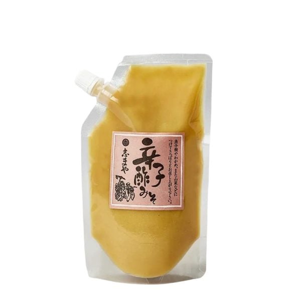 En karashimiso där silkeslen vit miso möter risvinäger och senap i en unik kombination. Basen är en krämig shiro (vit) miso med tydlig naturlig sötma från en hög andel koji, vars runda umami får sällskap av en precist avvägd syra och hetta. Resultatet är en miso som är både frisk och mjuk, där varken vinägern eller senapen tar över utan istället lyfter misons redan djupa umami. Mison tillverkas av företaget Shimaya enligt traditionella metoder där mycket av arbetet fortfarande sker för hand. Koji är avgörande för kvaliteten: riset ångas, bryts upp och inokuleras med tane-koji innan det övervakas och arbetas flera gånger under kontrollerade intervaller. Genom att arbeta i takt med säsongens temperatur och luftfuktighet utvecklas en koji med maximal arom och enzymaktivitet. Denna miso tillhör typen Gozen Miso, känd för sin ovanligt höga kojiandel. Här ligger förhållandet mellan koji och sojabönor på hela 140–160%, vilket ger en naturligt sötare, mindre salt och mer aromrik miso efter sex till tolv månaders fermentering. Den färdiga vinäger- och senapsmison är redo att användas utan vidare tillagning. Den lämpar sig särskilt väl till lätt kokta gröna grönsaker som broccoli, nanohana och spenat, samt till bläckfisk, ål, räkor, wakame, bambuskott och konnyaku. Även grillad fisk får ett lyft av den friska syran och den subtila hettan. 300g.