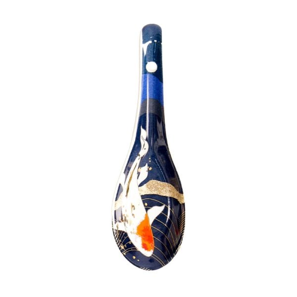 En jättevacker ramensked dekorerad med koifisk som simmar. Kontrasten av färgen ger verkligen en lyxig känsla. Perfekt till hemmagjord ramen samt udon, och så klart snabbnudlarna. Mäter 13.8cm.