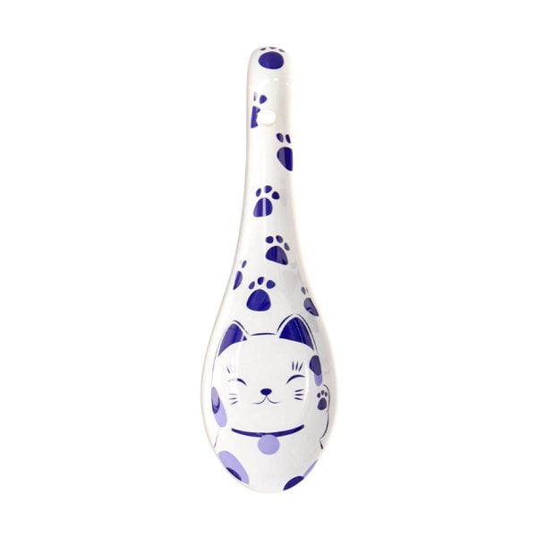 En jättesöt ramensked dekorerad med en Maneki Neko, den lyckobringande japanska katten. Fin blå och vit färg i klassisk japansk färgsättning. Perfekt till hemmagjord ramen samt udon, och så klart snabbnudlarna. Mäter 13.8cm.