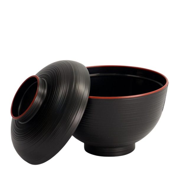 Klassisk japansk liten skål i lacquerware med lock och i svart färg och röd kant. Används ofta att servera miso och andra soppor i samt ris. Otroligt stilren design från Japan. Perfekt när du vill fylla på skafferiet med klassisk japansk design. Mäter 10.8×6.35cm och rymmer 300ml.