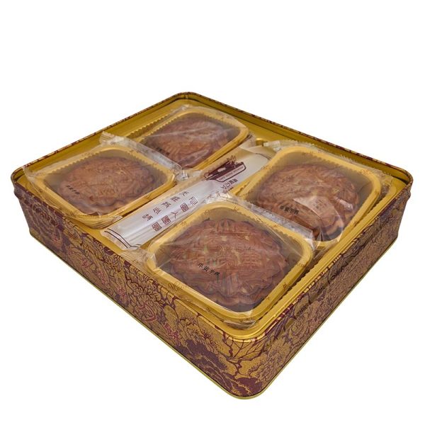 Mooncake eller månkaka är ett bakverk som förknippas starkt med Månfestivalen i Kina samt äts under den perioden. Med sin vackra design och unika fyllning har det blivit ett kulturellt och högtidligt bakverk som förknippas med den annalkande hösten. Det som gör bakverket så himla speciellt är att de ofta är fyllda med saltade vaktelägg. Denna variant innehåller dock inte äggula, perfekt för dig som gärna provar det spännande bakverket utan att behöva äta en äggula. Denna fina låda innehåller fyra stycken mooncakes smaksatta med svart sesam och lotuspasta. En lyxig presentask som gåva eller prova mooncake för första gången på finaste sätt. 4x185g.