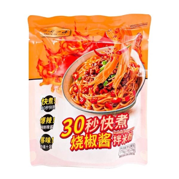 En rökig och rostad chilisås täcker dessa snabblagade risnudlar. Här bjuds du på en lyxig kinesisk snabbnudlar med en aromatisk och klassisk kinesisk sås gjord på rostade gröna chilifrukter. Smakprofilen är en balans mellan chilins friska hetta, vitlök, grillad arom samt soja. Perfekt för dig som vill ha en snabb nudelmåltid med tydlig “street-food”-känsla och rejält smaktryck. 175g.