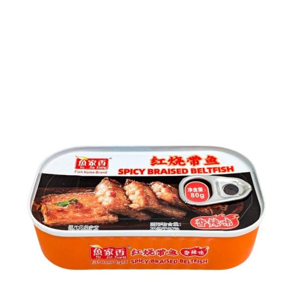 Så kallad beltfish på burk, även känd Hårstjärt (Largehead hairtail). Det är en klassisk kinesisk konserverad fisk tillagad i “hongshao”-stil, det vill säga rödbräserad som ger fisken en djup, rund och lätt söt-salt umamismak. Smakprofilen är fyllig snarare än stark: mörk soja, aromatiska kryddor och en behaglig sötma som gör den lätt att tycka om även för den som inte brukar äta kinesiska fiskrätter. Så här äter du den enklast: värm gärna innehållet lätt och servera direkt med nykokt ris – den rödbräserade såsen är gjord för att blandas med ris och blir nästan som en färdig huvudrätt. Den funkar också jättebra som snabb topping på nudlar, i en risskål med grönsaker, eller som del av en större måltid med flera rätter. Vill du göra det extra gott kan du lägga till något friskt som balanserar såsens mustighet, till exempel gurksallad, picklade grönsaker eller lätt wokad pak choi. 80g.