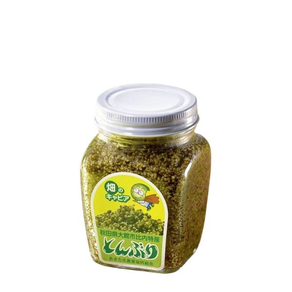 Tonburi, ibland kallad “åkerns kaviar” eller “caviar of the fields”, är fröna från växten Kochia scoparia (houkigi), en regional specialitet från Akita-prefekturen i norra Japan. De små, svartgröna pärlorna mäter endast 1–2 mm och påminner visuellt om rom, men det är texturen som gör dem unika: ett tydligt, rent crunch som exploderar lätt mellan tänderna. Smaken är mild och med tydliga grönsakstoner, som kan påminna om broccoli, kronärtskocka och gröna örter. I Akita är tonburi en självklar del av shōjin-ryōri, den buddhistiske tempelmatens vegetariska kök där textur och subtil smak är centrala element. Just därför har den fått smeknamnet “fältens kaviar” – inte för att imitera fiskrom, utan för sin eleganta pärlstruktur och sin förmåga att lyfta en rätt visuellt och texturmässigt. Trots sin anknyting till det vegetariska köket är det en mångsidig ingrediens oavsett kost. Använd som topping: garnera över tofu, sashimi, tataki eller i en misobaserad dressing. Den fungerar även utmärkt med rökt fisk, i en majonnäs, eller i vegetariska rätter där du vill tillföra ett distinkt crunch utan att dominera smaken. 170g.